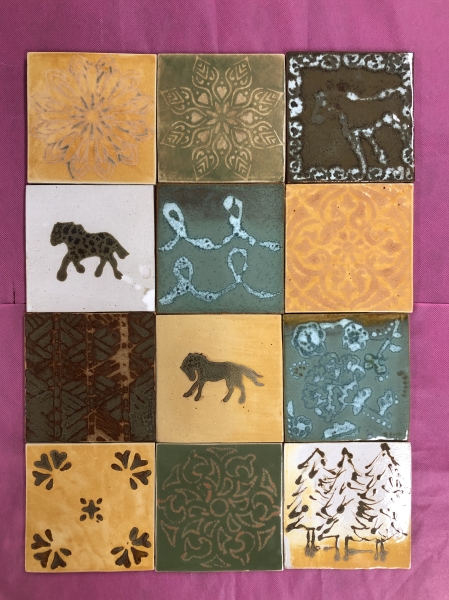 In this course we will learn basic glazing dipping and pouring techniques.I will demonstrate how to decorate, using layers of glaze, spraying the glaze how to use wax, on glazes, sponges, stencilsο and how to brush glazes. Students will try these techniques on 4 pre-made bisque tiles. This course is about limproving your glazing skills it doesn’t include underglazes, stains, slips, washes or englobes. Contact me for details. | |